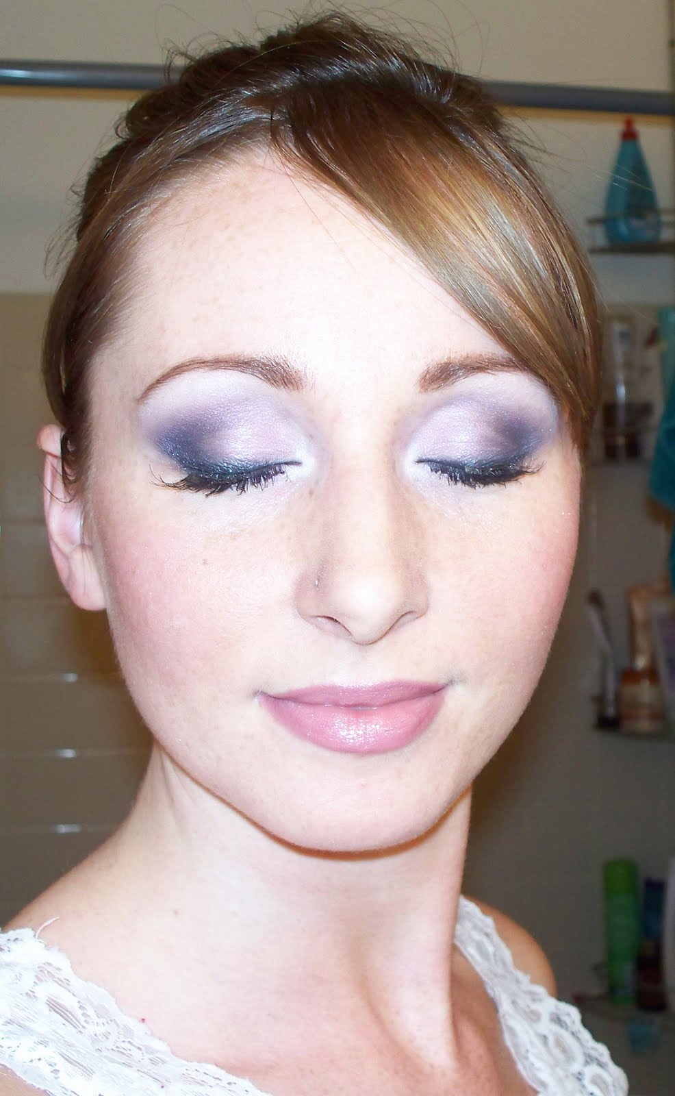 ~highlight(under eyebrow blended into the dark in the crease and on the inner corner)-lightly shimmery white