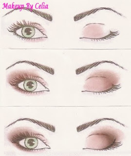 -I couldn't show this on the sketch but like it shows on the picture, it's always nice to have highlight on your eyes. Highlight is a little bit dramatic in this picture bit it does look nice when it's more subtle also. I just put the highlight on the inner corner, blended it into the medium shade a little and under the eyebrow blended into the dark shade.-When you want a more dramatic look add a little bit of black shadow to the outer corner shading on lash line and crease and making sure it all blends together well. the bottom picture has just a little bit of black on it but you can see where it is darker.